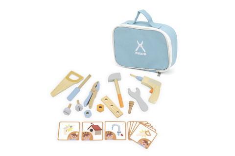 Tato nádherná sada nářadí je uložena v praktické látkové brašně, která usnadňuje přenášení i ukládání. Obsahuje 12 různých kusů nářadí vyrobených z dřeva, které jsou bezpečné pro děti. Díky své velikosti a hmotnosti je ideální pro děti od 3 let, což je věk, kdy si začínají hrát na opraváře a rozvíjet jemnou motoriku a představivost.