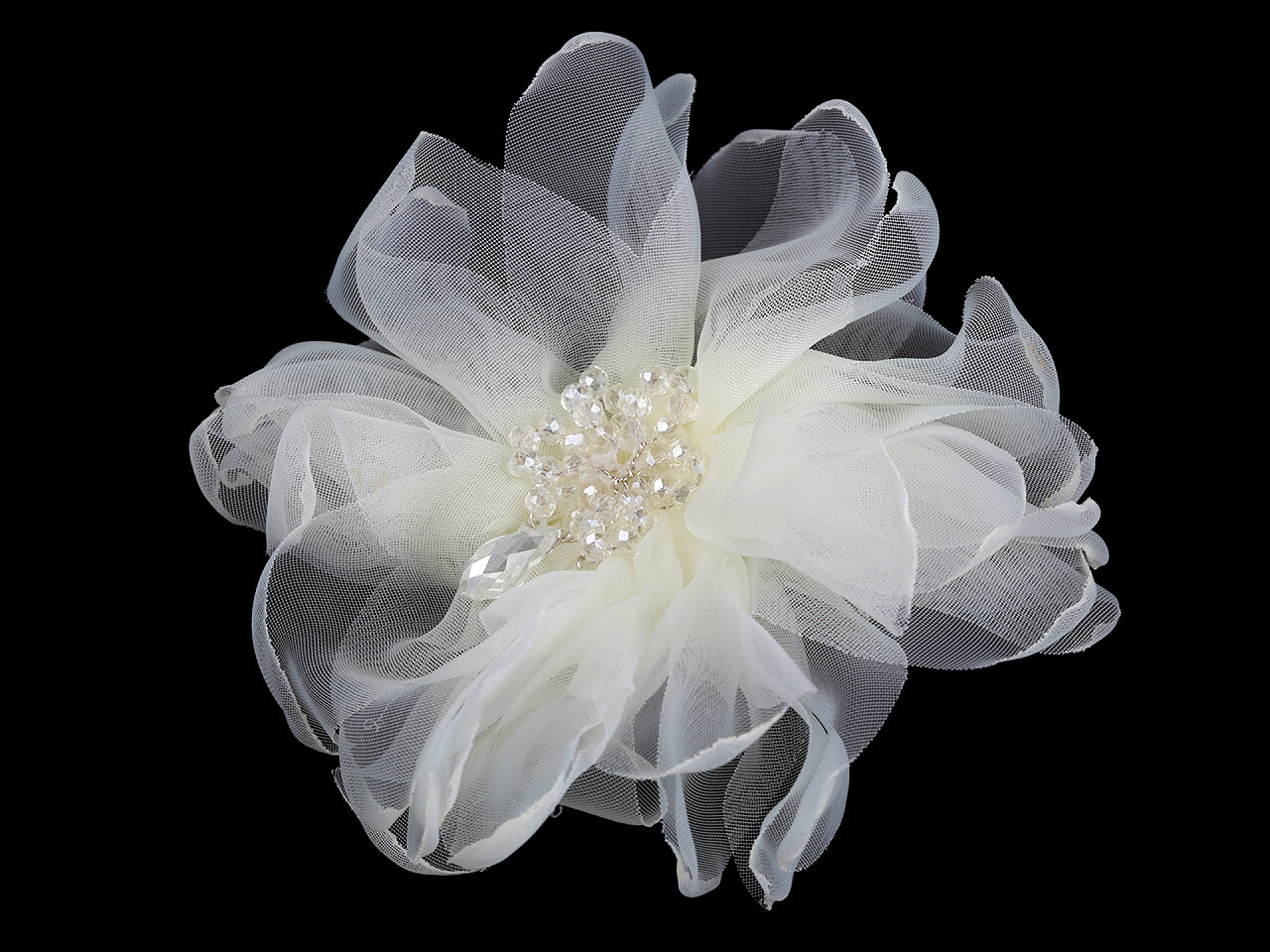 Tato jemná textilní brož je vyrobena z lehké organzy, která vytváří bohaté a nadýchané okvětní plátky. Ve středu brože jsou pečlivě umístěné broušené korálky, které se krásně třpytí a přitahují pozornost. Díky praktickému brožovému špendlíku ji snadno připnete na šaty, halenku, sako, klobouk nebo kabelku a okamžitě tak oživíte svůj outfit.