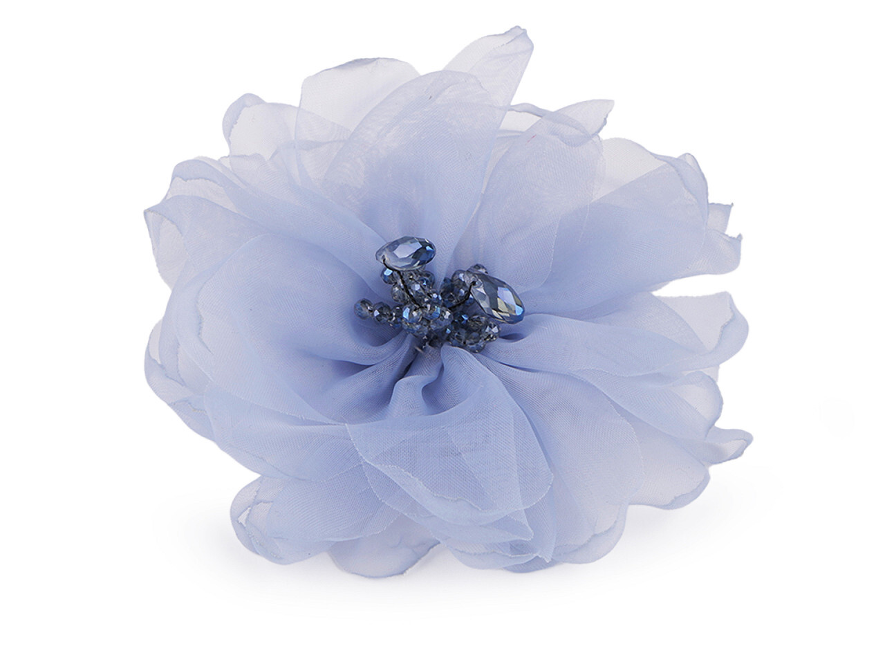 Brož květ s broušenými korálky Ø10 cm v krabičce - 1 ks - 8 modrá světlá