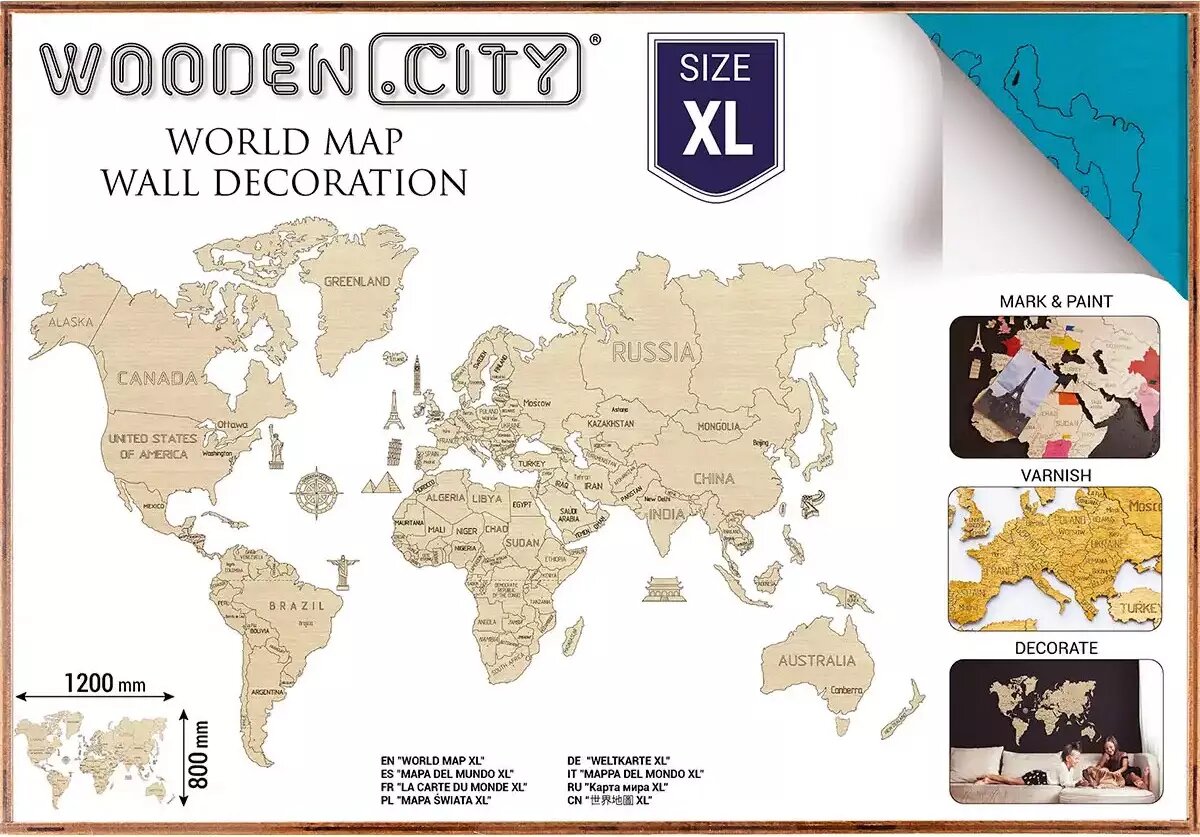 WOODEN CITY Dřevěná mapa světa velikost XL (120x80cm) modrá