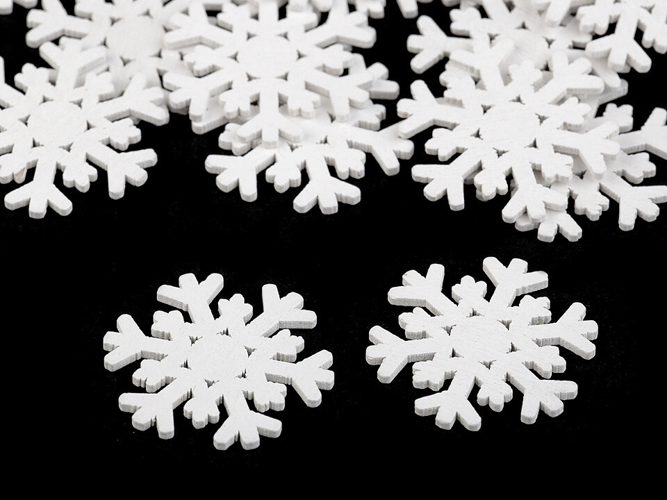 Dřevěná vločka k nalepení - 20 ks - 1 bílá
