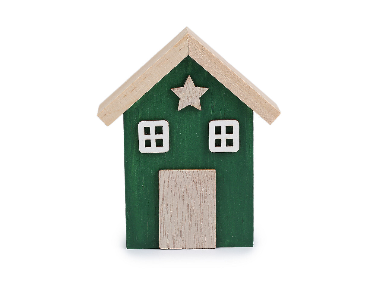 Dekorace celodřevěný domeček - 1 ks - 2 zelená hvězda