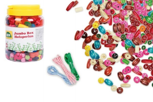 Souprava obsahuje 438 kusů dřevěných korálků spolu s 6 šňůrkami, které jsou prakticky uloženy v plastové dóze o rozměrech 13x10x10 cm. Takto máte vše přehledně uspořádané a připravené k použití. Vhodné pro děti od 4 let, s tímto setem si užijí spoustu zábavy a rozvíjí přitom jemnou motoriku i představivost.