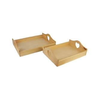 Sada dřevěných podnosů. Sada obsahuje 2 podnosy. Malý podnos má rozměry : 34,5 x 25 cm, výška 5/10 cm. Velký podnos má rozměry : 40 x 30 cm, výška 5/10 cm. Barva : přírodní. Materiál na bázi dřeva.