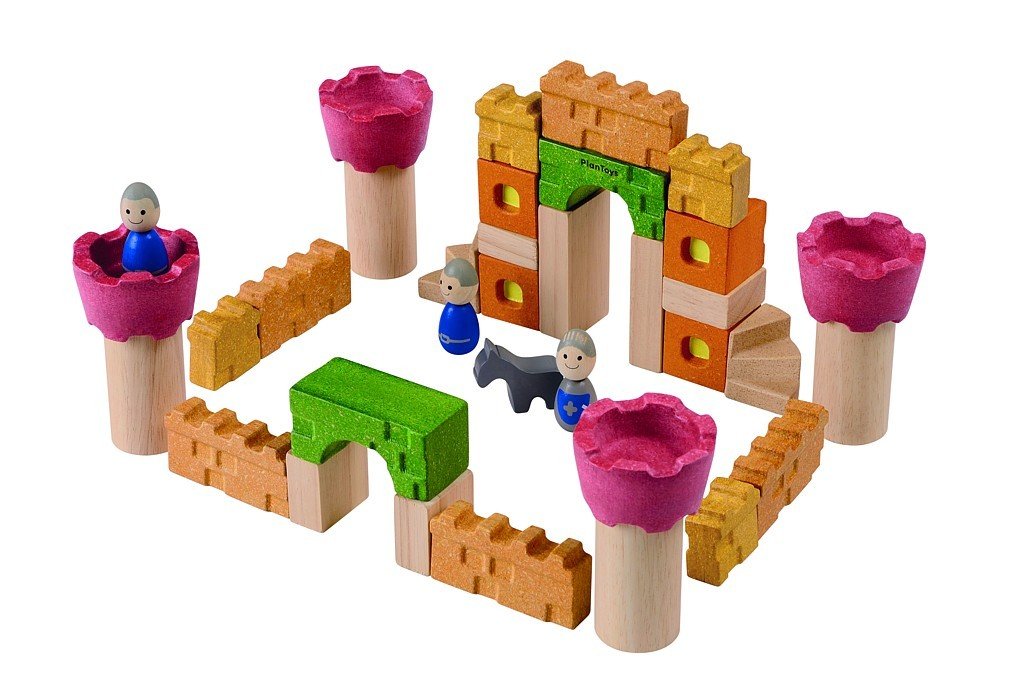 Objevte svou nápaditou stránku s touto dřevěnou sadou s hradební tématikou. Sada z dílny společnosti Plan Toys obsahuje 35 dřevěných kusů - rytíře, koně a variace barevných i nebarevných kostek: