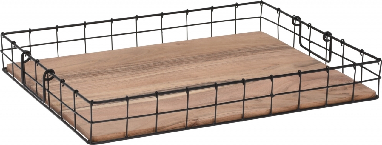 Kovový tác s dřevěným dnem 50x37x6 cm II. jakost