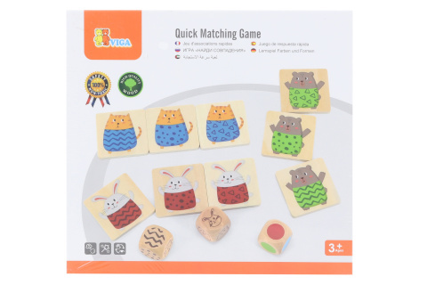 Dřevěná hra na rychlé hádání od VIGA je perfektní párty hra pro přátele a rodinu. Úkolem dítěte je hodit vybraný počet kostek (od 1 do 3) a najít správné zvířátko se správnými vzory na tričku a správnou barvou. Vše je vyrobeno ze dřeva a natřeno netoxickými barvami. 1 kostka - snadná úroveň, 2 kostky - střední úroveň, 3 kostky - obtížná úroveň. - sada se skládá z 27 dřevěných žetonů a 3 kostek. Hra je celá ze dřeva umožňuje dětem trávit čas a učit se hrou, natřeno netoxickými barvami, díky čemuž je bezpečné pro děti. Hračka vyvíjí: vnímavost u dítěte, logické myšlení, jemné motorické dovednosti, soustředění, zraková koordinace. Rozměr balení cca 20,5 x 19 x 4,5 xm. Věk 3+