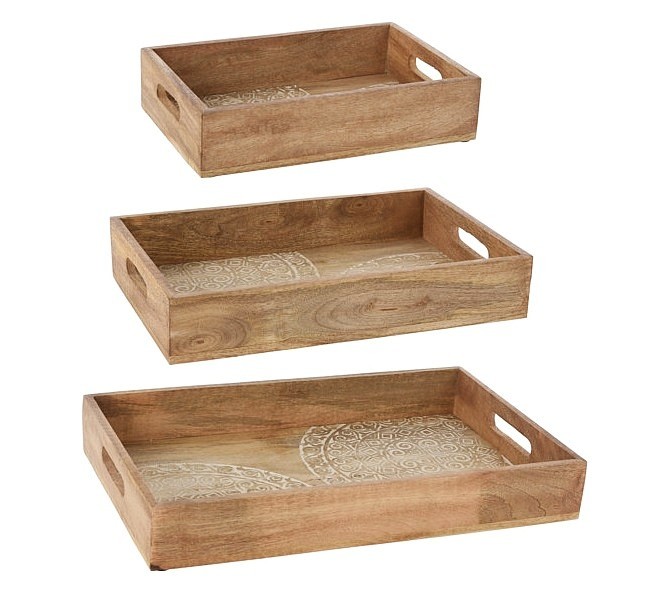 SERVING TRAY WITH WHITE CARVING, MANGO WOOD (MAGNIFERA INDICA) WITH OPEN HANDLES, SET OF 3PCS. EACH SIZE WITH UNIQUE STICKER BARCODE/ SERVING TRAY LARGE(8720573 141161), 470X295X70MM, Hangtag (HT)/ SERVING TRAY MEDIUM(8720573 140751), 380X240X65MM, Hangtag (HT)/ SERVING TRAY SMALL(8720573...