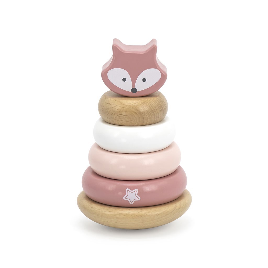 Tato klasická vzdělávací hračka od renomovaného výrobce Viga obsahuje pět pastelově barevných dřevěných disků různé velikosti, včetně jednoho dílku ve tvaru roztomilé liščí hlavy. Díky pevné základně s kolíkem může dítě snadno nasazovat jednotlivé dílky a stavět věže. Pyramida je navržena speciálně pro batolata od 12 měsíců, která začínají objevovat svět staveb a forem.