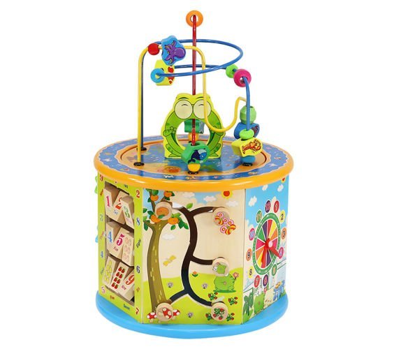 V kostce je šest barevných funkčních stěn s mnoha zajímavými úkoly pro menší i větší děti. Nahoře je navíc veselé barevné proplétání, dole čínská deska.