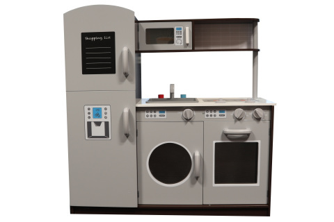 Dřevěná kuchyňka s lednicí, sporákem, troubou, dřezem, pračkou a mikrovlnkou. Rozměry sestavené kuchyňky cca 81 x 85 x 27 cm. Rozměry balení cca 29,5 x 86 x 14 cm. Věk 3+ číst celé