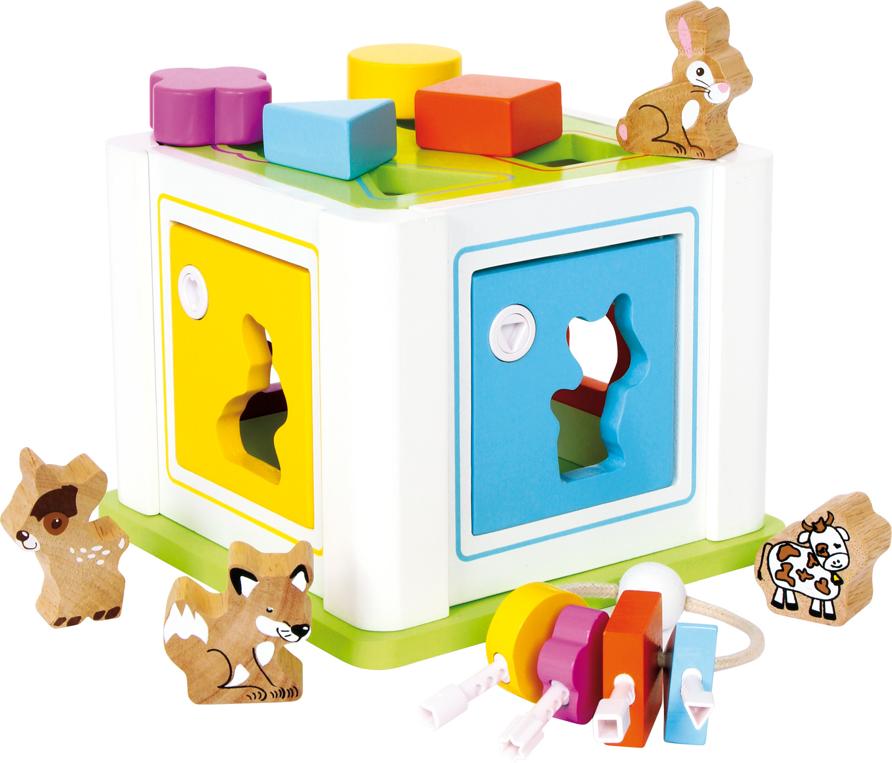 Dřevěná motorická kostka zvířátka Dřevěná motorická kostka s vkládacími tvary, klíčemi a zvířátky v pestrých barvách. Upevňuje motorické dovednosti dítěte. Pevná a odolná konstrukce kostky. Německá firma Legler zaměřená na výrobu kvalitních dřevěných hraček od roku 1996. Všechny dřevěné hračky značky small foot mají označení CE a jsou vyráběny dle evropské normy pro bezpečnost hraček EN 71. Použité barvy jsou speciálně vyvinuty pro dřevěné hračky a jsou odolné i proti slinám dětí. Dřevo, které se používá pro tyto hračky, většinou pochází z lesnických společností zapojených do zalesňování. To nabízí všem zákazníkům možnost přispět k zachování přirozeně rostoucích lesů. Dřevěné hračky small foot jsou zářivě barevné produkty, které jsou vyrobeny převážně z přírodních surovin - dřeva. Dětem dělají radost od útlého věku, rozvíjí jejich hmatové a smyslové dovednosti. Cílem značky small foot je podporovat duševní a fyzický vývoj dětí.