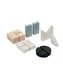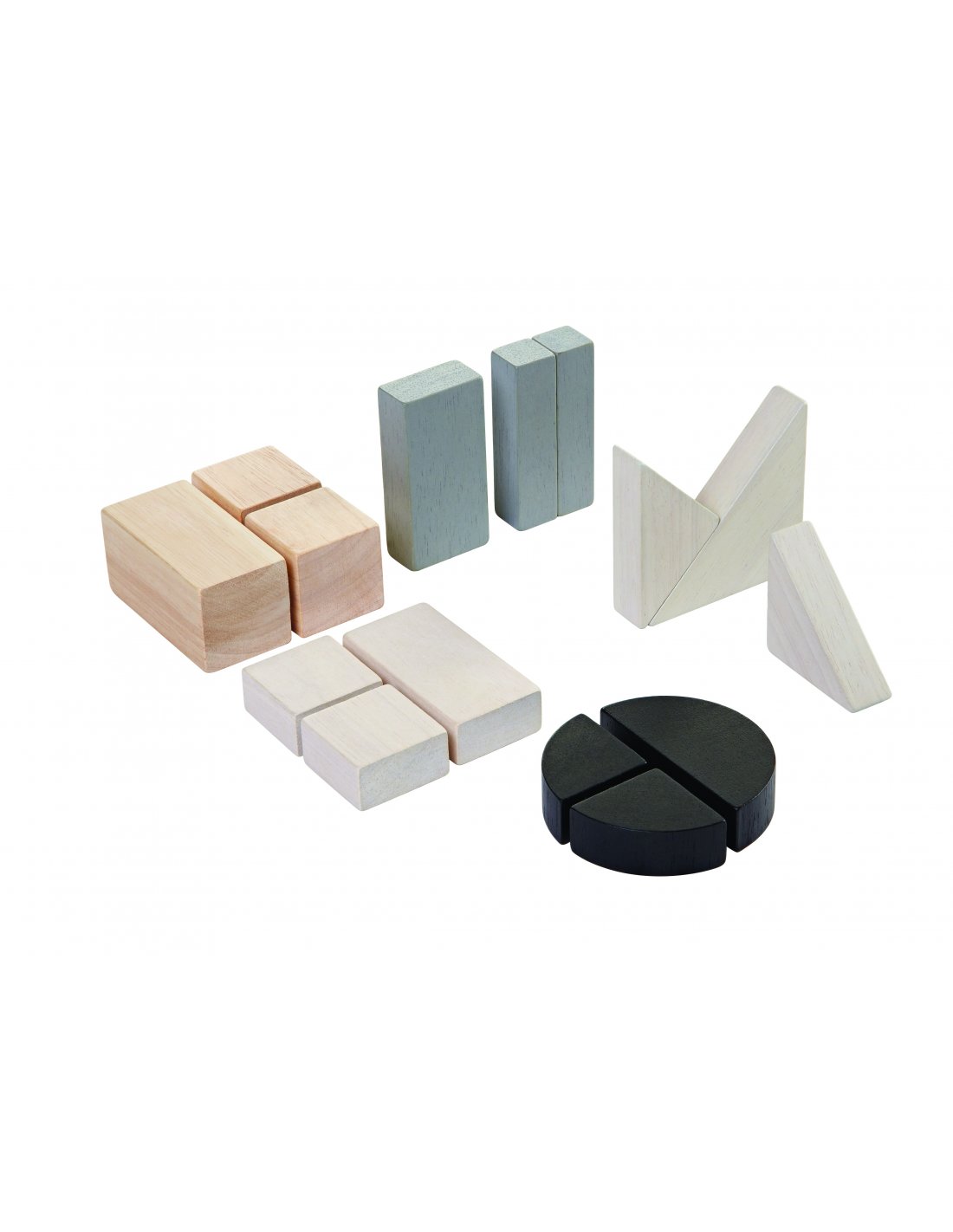 Sada zlomkových kostek obsahuje 15 dílků, které dětem mohou pomoci s učením geometrie, tvarů a zlomků zatímco počítají a staví různé tvary. Děti se baví vytvářením a stavěním věcí podle vlastní představivosti. Plan Toys je již 30 let úspěšně fungující firma v oboru výroby vysoce kvalitních ekologických hraček. Firma vznikla v roce 1981 na jihu Thajska a v této oblasti funguje dodnes. Ve své produkci využívá dřevo z kaučukovníků, které již neprodukují latexové mléko. Společnost toto dřevo vykupuje od farmářů, pro které již nemá žádnou hodnotu, ale rovněž dbá na to, aby byly opětovně vysazovány stromy nové. Právě použitím těchto stromů, je výroba trvale udržitelná, ekologická a navíc z vysoce kvalitního materiálu. Výrobní proces je navržen tak, aby se za využití solární energie a biomasy maximálně šetřila energie a nedocházelo k žádné produkci odpadu. PlanToys používá ve své výrobě hraček lepidlo bez formaldehydů a barvy na vodní bázi, které jsou bezpečné, bez olova a jiných těžkých kovů. Pro obaly a tištěné materiály se využívá recyklovaný papír. Hračky mají certifikát FSC (pro ekologicky šetrné, sociálně prospěšné a ekonomicky životaschopné obhospodařování lesů) a ISO 9001 (pro vysokou kvalitu produktů) a 14001 (management životního prostředí). Firma získala akreditaci o sociální odpovědnosti (OHSAS 18001), což vypovídá o perfektním vztahu k zaměstnancům a vytváření bezpečného a zdravého pracovního prostředí. Firma zaměstnává mimo jiné také osoby se zdravotním postižením, pravidelně sponzoruje mnoho aktivit pro děti, jako jsou dětské kluby, hřiště, knihovny a herny, ale dokonce i spolupracuje s maminkami dětí s různým postižením a spolu s nimi vytváří hračky, které mohou těmto dětem pomoci. Hračky od PlanToys podporují hru, kreativní mysl a učí děti o světě kolem nás. O jejich úspěchu vypovídají také desítky ocenění z celého světa.