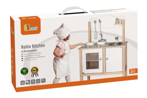 Dřevěná kuchyňka se sporákem, skříňkou a dřezem. Součástí je nádobí a doplňky. Rozměry kuchyňky cca 54 x 83,5 x 30 cm. Rozměry balení cca 56 x 33 x 12,5 cm. Věk 3+