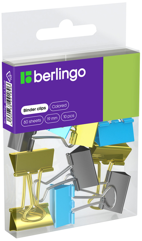 Klip do papieru 19mm, op. 10 szt. kolory niebieskie, czarne i złote, Berlingo