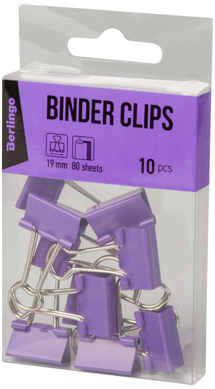 Klip do papieru 19mm, 80 arkuszy op. 10 szt. fioletowe, Berlingo