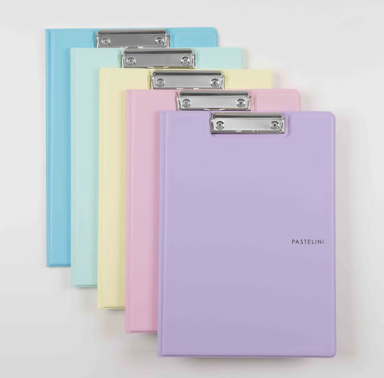 Plastová psací podložka v moderních pastelových barvách, rozevírací s kovovým klipem. Extra pevná lepenka. Rozměr 220 x 323 x 5 mm. Na dokumenty A4. číst celé