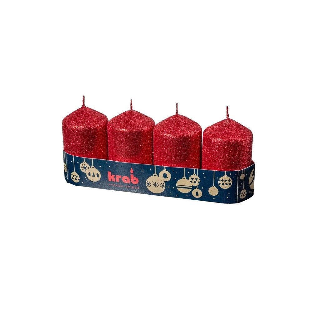 Krab - svíčka válcová v lodičce 50 × 80 mm, flitrovaná, červená - 4 ks