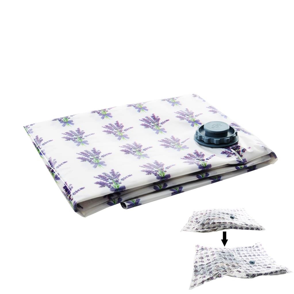Odsávací vak je vhodný pro uskladnění sezónních oděvů, lůžkovin, textilních i plyšových hraček. Po odsátí vzduchu z vaku pomocí vysavače nebo pumpičky na odsávání vaků se objem vaku výrazně zmenší a Vy ušetříte místo na ukládání. Oděvy zároveň chráníte před roztoči, moly i prachem - je parfémovaný - vůně LEVANDULE. Materiál: plast. Rozměry: 40x60 cm.
