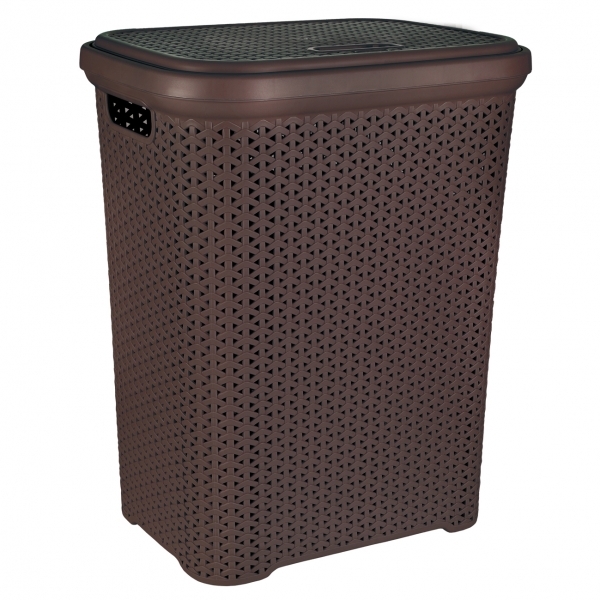 Koš na prádlo s odklápěcím víkem. Materiál: plast. Dekor ratanu. Rozměry: 44x33x56 cm. číst celé