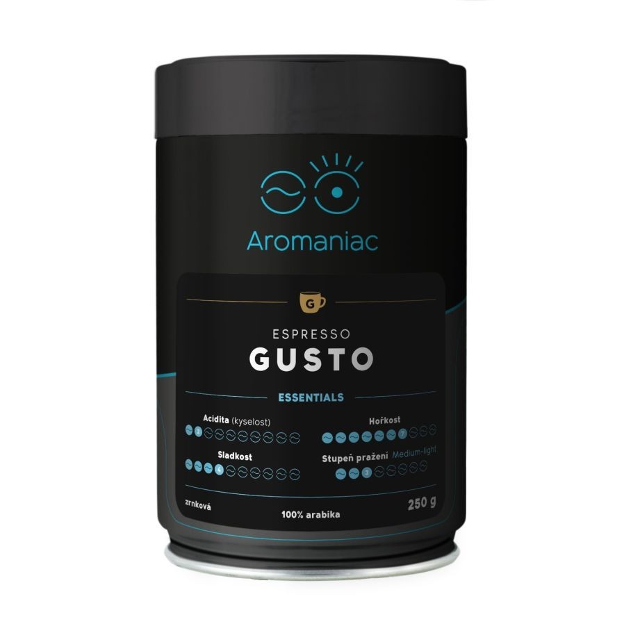Káva Aromaniac Espresso Gusto - zrnková, dóza, 250 g