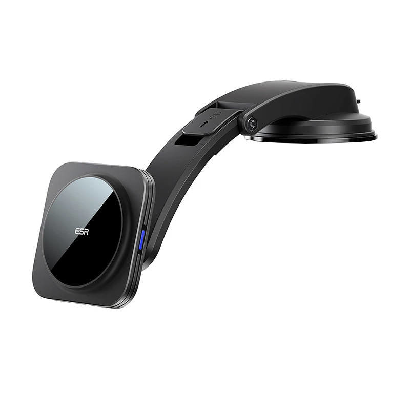 ESR HaloLock suction cup car mount with Qi inductive charger, MagSafe (black).