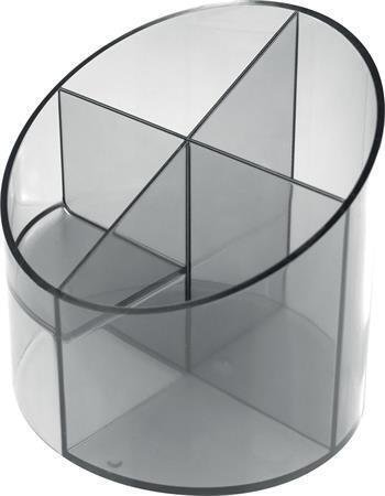 Tento stojánek je vybaven čtyřmi různě velkými přihrádkami, které přehledně uspořádají vaše tužky, pera, nůžky, pravítka a další kancelářské potřeby. Díky své kompaktní velikosti s průměrem 110 mm a výškou 105 mm perfektně zapadne na každý pracovní stůl bez zbytečného zabírání místa. Navíc je vyroben v transparentním provedení, což zajišťuje elegantní vzhled a navíc umožňuje rychlý přehled o obsahu jednotlivých přihrádek.