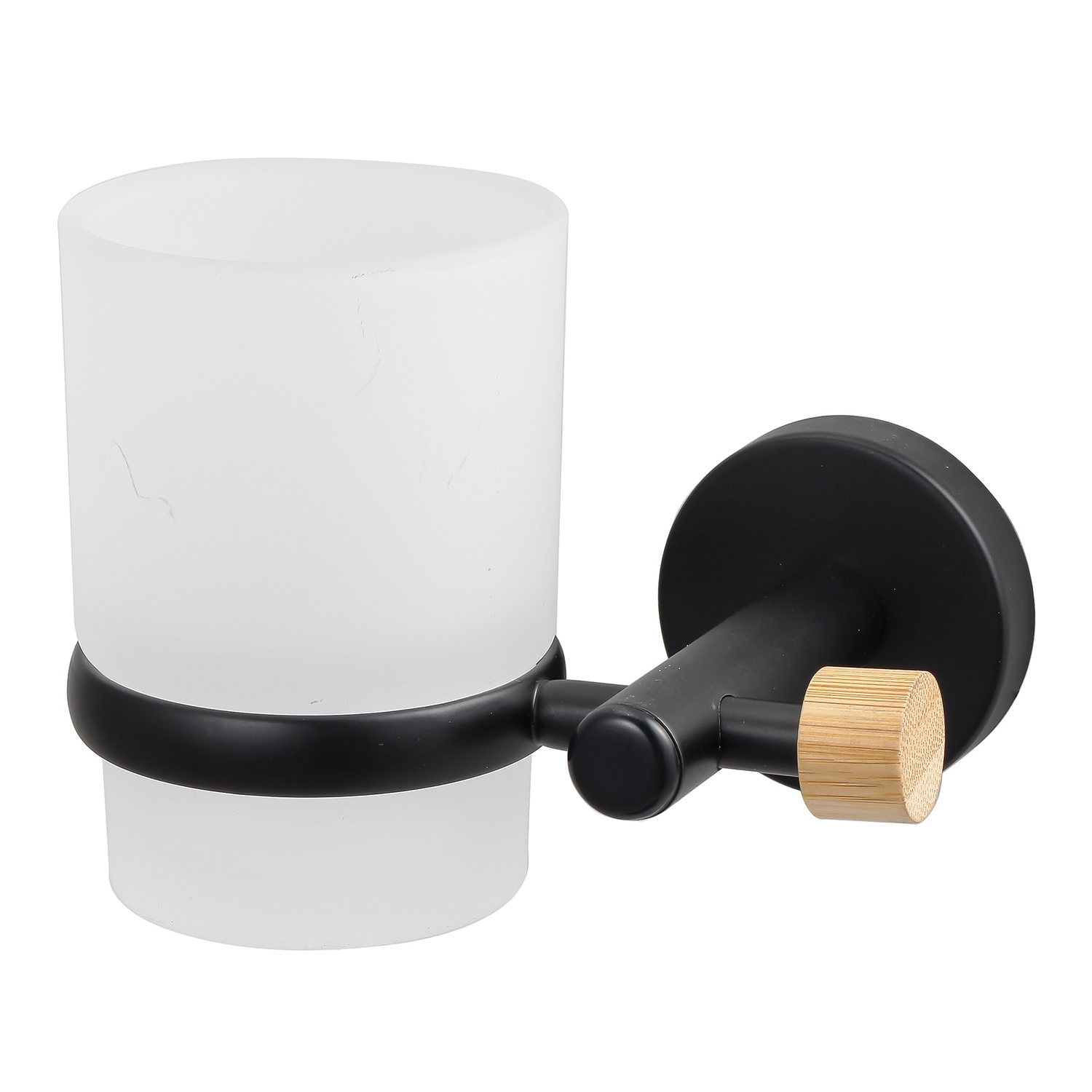 MSV nástěnný kelímek na zubní kartáčky IANA, bílý, matně černý, bambus, ocel
