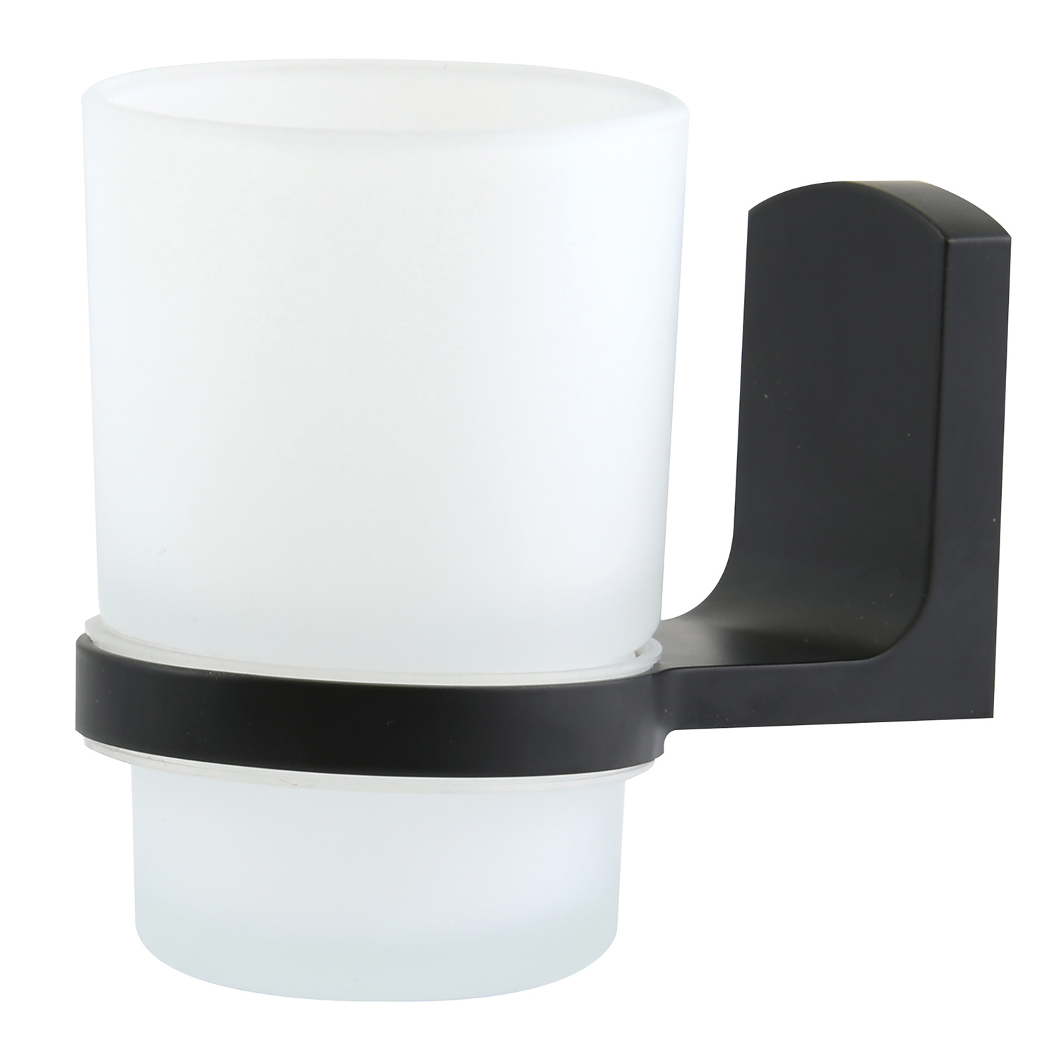 Spirella nástěnný držák se skleničkou na kartáčky TAKU, sklo, matná černá-bílá, ocel