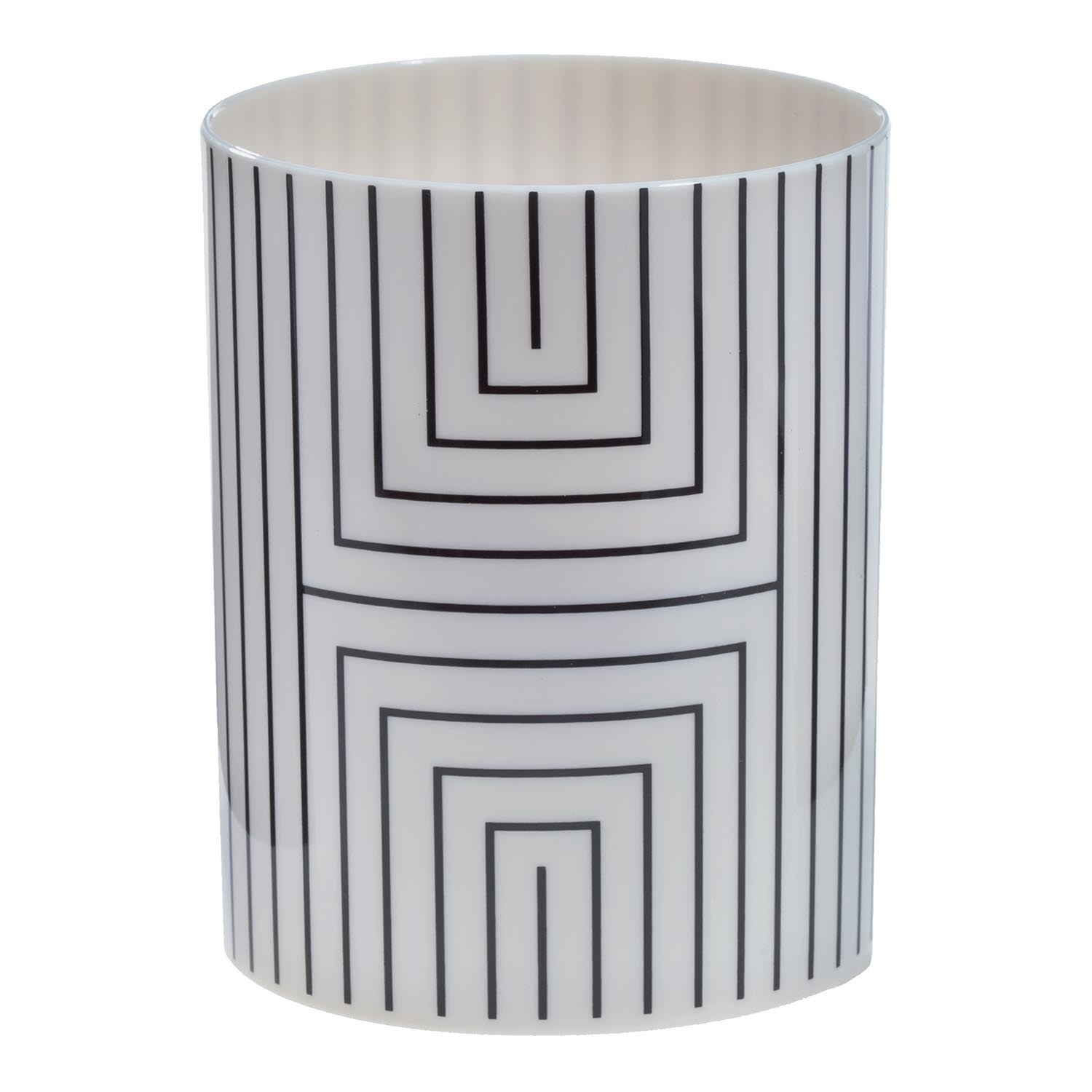 Kelímek na zubní kartáčky GRAPHIC je ideální volbou pro milovníky moderního designu a geometrických vzorů. Ideální pro zubní kartáčky, zubní pastu nebo jako kelímek na vodu. Snadno čistitelný a odolný vůči vlhkosti. Barva: Bílá s černým geometrickým vzorem. Rozměry: 7,3 x 9 cm. Materiál: Polyresin. Jednotný design ladí s dalšími produkty ze série Graphic.