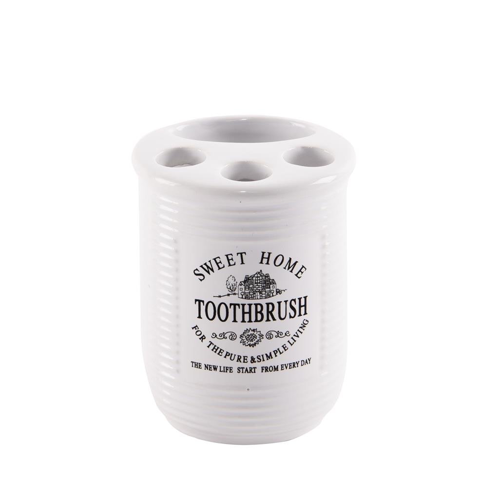 Pohár na zubní kartáčky a pastu. Barva bílá, dekor SWEET HOME. Materiál: keramika. Rozměry: pr. 8 cm, v. 10 cm. číst celé