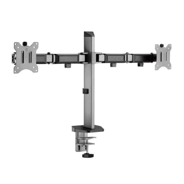TECHNICKÁ SPECIFIKACETyp montáže: stolníDoporučená velikost obrazovky: 17\'\' - 32\'\' (43 - 81 cm)Maximální zatížení (kg): 9 kg/19,8 lb (na monitor)VESA: 75x75,100x100Otočení: +90° až -90°Otočení obrazovky: +180° až -180°Nastavení úrovně: neRozsah ramen (mm): 380Úroveň: nePro zakřivené obrazovky: anoVedení kabelů: anoOdnímatelná deska VESA: anoInstalace: svorka / průchodka (stůl)Barva: šedáMateriál: ocel, plastPovrchová úprava: práškové lakováníROZMĚRY A HMOTNOST