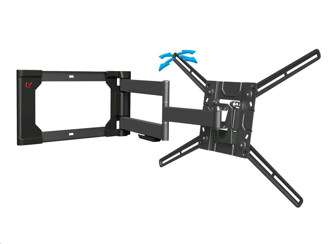 • Držák určen pro: TV, monitory• Typ: nástěnný, polohovací• 4 - pohybový: rameno s kloubem• Max. nosnost: 50 kg• Úhlopříčka obrazovky: 40-80" (101-203 cm)• Maximální náklon: 0°~25°• Vysunutí od zdi: 5.9 - 62 cm• Natočení: 180° + 360° + 180°• Upínací rozteče: nastavitelná od VESA 200x100 do VESA 600x400 mm• Materiál: ocel• Barva: černá