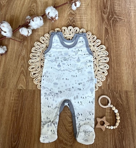 Kojenecké dupačky Mamatti, Město, bílo/šedé, vel. 68; 68 (3-6m)