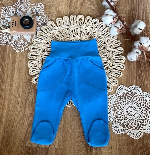 Polodupačky jsou vyrobené z atestované kvalitní česané bavlny, 100% organická bavlna. Široký pás miminko netlačí na bříšku - pohodlné.