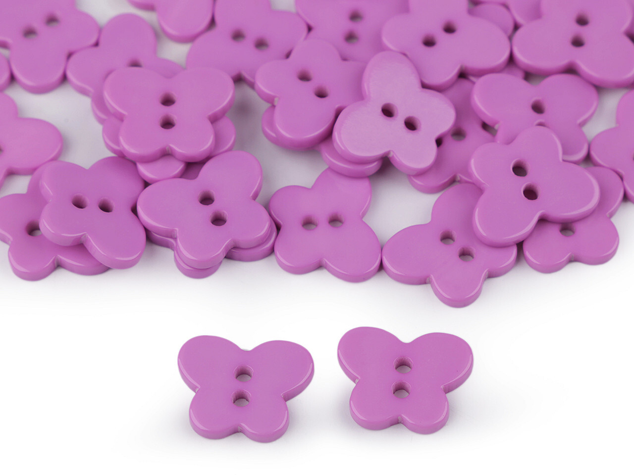 Knoflík motýl velikost 26" - 50 ks - 2 fialová lila