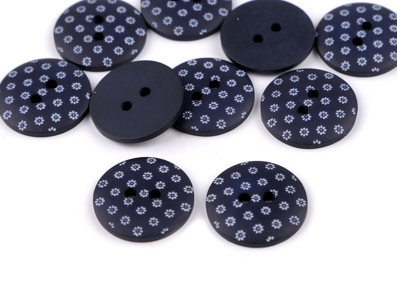 Knoflík modrotisk velikost 28" - 10 ks - 2 (44436) modrá tmavá květy