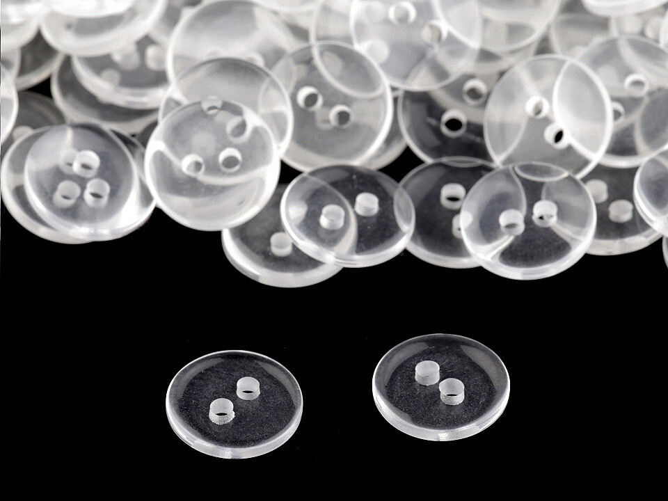 Transparentní dvoudírkové knoflíky jsou vhodné jako zapínání na košile, svetry, šaty i polštáře. Dají se použít také jako protikus. Mají kulatý tvar. Knoflíky jsou baleny v sáčku.Velikost knoflíků naleznete v této tabulce. číst celé