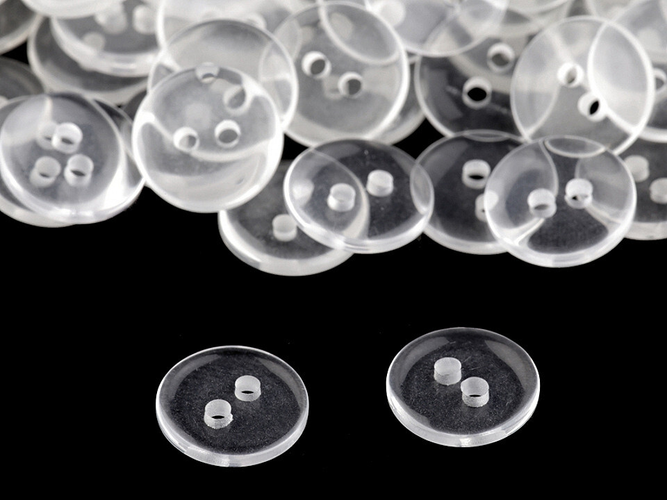 Transparentní dvoudírkové knoflíky jsou vhodné jako zapínání na košile, svetry, šaty i polštáře. Dají se použít také jako protikus. Mají kulatý tvar. Knoflíky jsou baleny v sáčku.Velikost knoflíků naleznete v této tabulce.