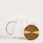 - Nowoczesny design z różowym uchem i złotym wieczkiem