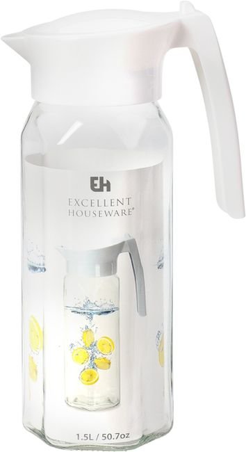 džbán 1,5l sklo, s víčkem-plast, bílé