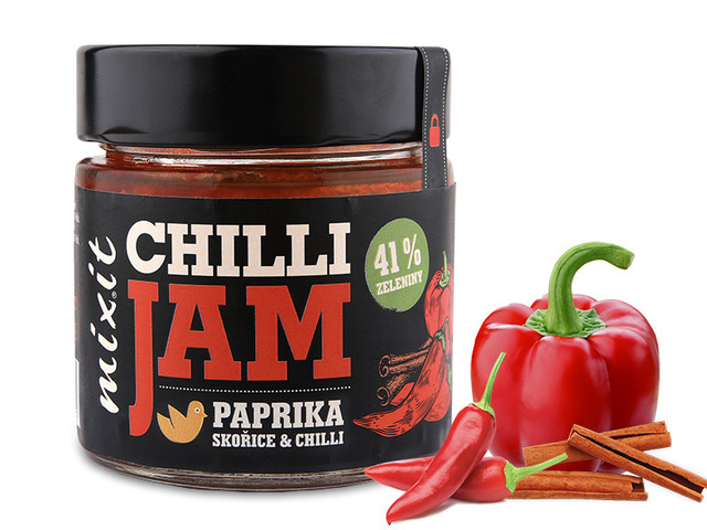 Novinka! Přivítejte na Mixit Chilli Jam, čili dokonalého parťáka nejen k našim Křupavým sýrům. Lehce pikantní Chilli jam je výborný do sendvičů, burgerů, ke grilovanému masu nebo do polévek. Kouzlo jemně pikantního jamu je v pečlivě vybraných červených paprikách a chilli papričkách. Delikátní chuť Chilli jamu jsme umocnili špetkou skořice a 100% citronovou šťávou.