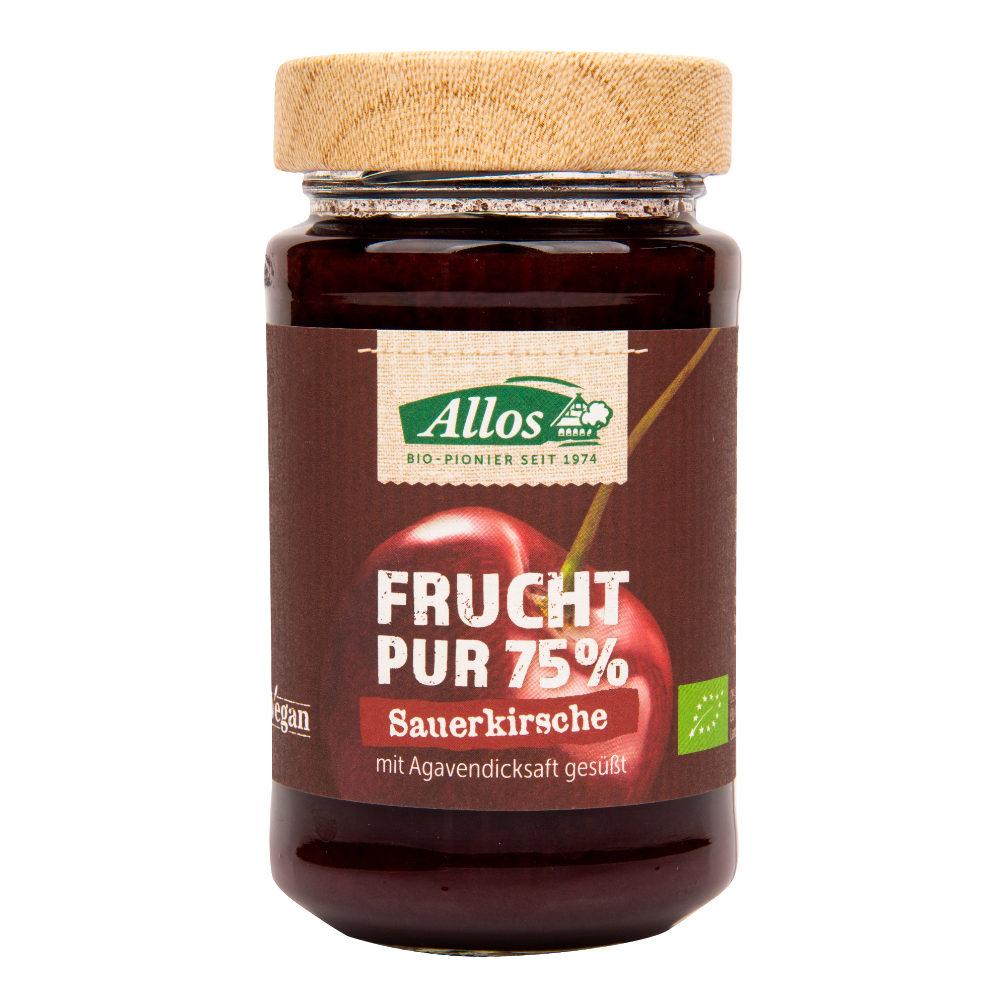 Višně 75 %, agávový sirup 20 %, želírující látka: pektin, zpevňující látka: citrát vápenatý, koncentrát citronové šťávy. Na výrobu 100 g produktu bylo použito 75 g ovoce. produkt kontrolovaného ekologického zemědělstvíUrčeno k přímé spotřebě.