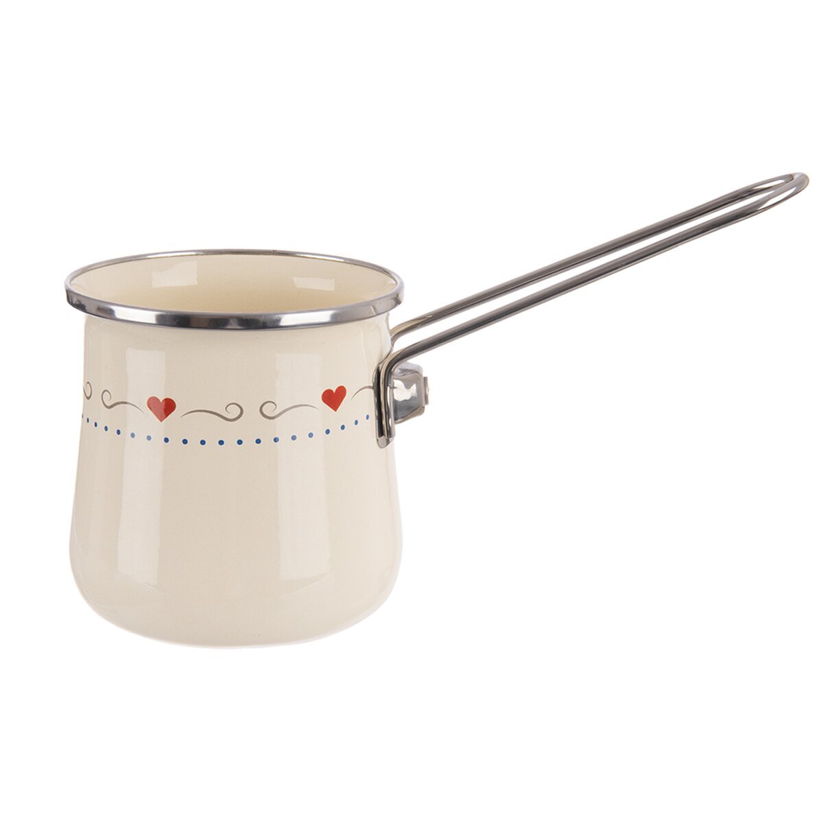 Smaltované nádobí nabízí možnost zdravého vaření bez uvolňování nebezpečných a nežádoucích látek do jídel. Nádobí naakumuluje teplotu a dlouho ji udrží. Vyznačuje se dlouhou životností, zdravotní nezávadností pro alergiky, univerzálním použitím. Sortiment smaltovaného nádobí v provedení TONČA doplňuje nerezové kování, tato řada zahrnuje hrnce, kastroly, rendlík, dózy, mísu, džezvu a čajník. Džezva s rukojetí je určena především k vaření kávy. Materiál: smaltovaný plech, kov (držadlo), nerez (lem). Je vhodná na všechny typy spotřebičů včetně indukce, do myčky na nádobí. Není vhodná do MVT. Rozměry: objem 0,6 l, pr. 10 cm, v. 10/13 cm.