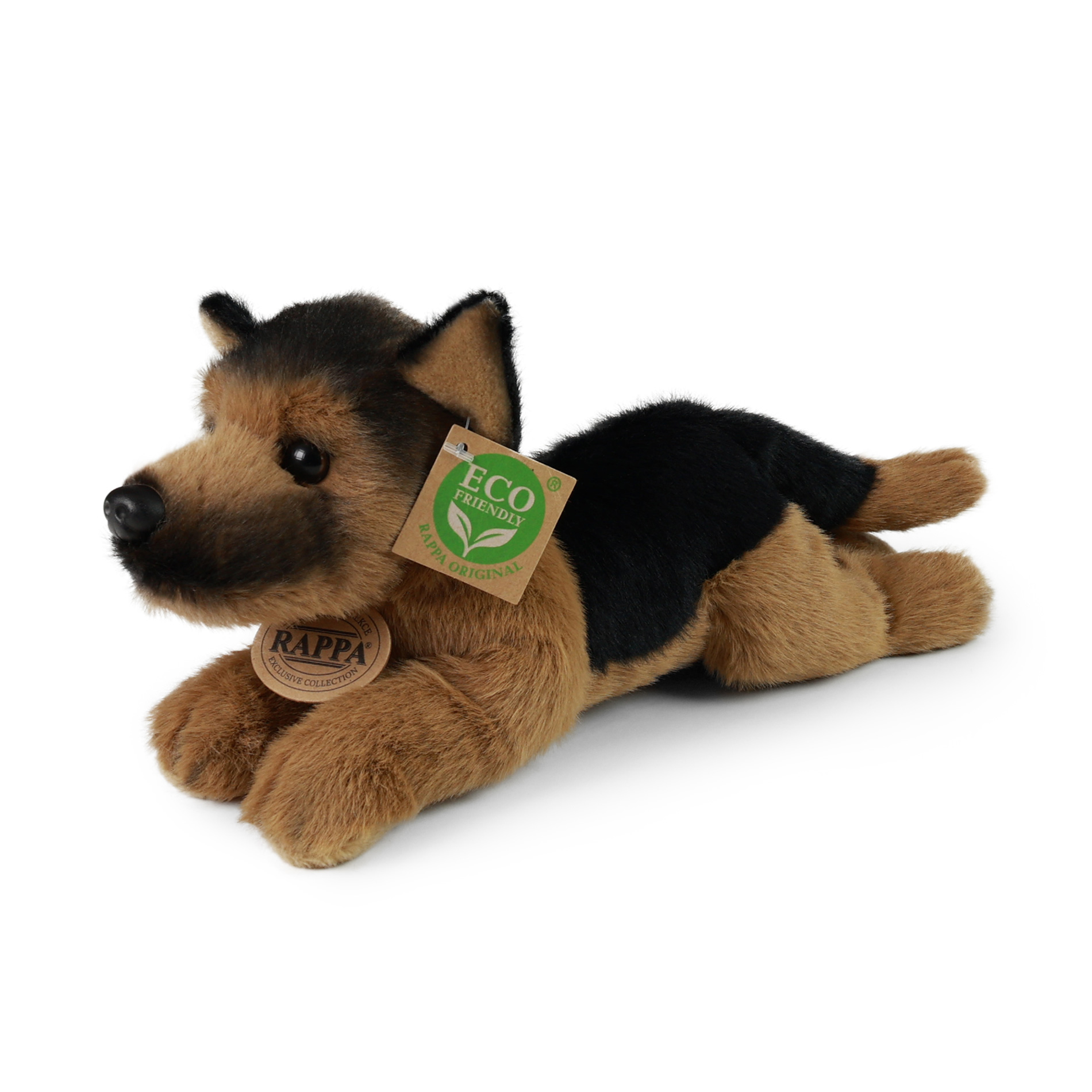 Plyšový pes německý ovčák o velikosti 20 cm je vyroben z vysoce kvalitní, heboučké plyše a je tak součástí exkluzivní kolekce plyšových hraček RAPPA. Perfektní dárek pro jakoukoli příležitost! Co to vlastně ECO-FRIENDLY znamená? Výplň plyšové hračky je vyrobena z recyklovaných PET lahví. Tento materiál je zcela bezpečný, na omak nerozeznatelný od standartní výplně a plně atestovaný pro bezpečnost i těch nejmenších. Rozhodli jsme se jít zelenou cestou co nejméně zatěžující životní prostředí- cestou ECO-FRIEN