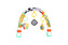 Pałąk edukacyjny nabízí bezpečné a ergonomické řešení pro zábavu a stimulaci smyslů dětí ve věku 0 až 18 měsíců. Díky univerzálnímu upevnění jej snadno připevníte na postýlku, kočárek nebo autosedačku, aby si vaše dítě mohlo hrát doma i na cestách. Hračky vydávají různé zvuky, například pískání a šustění, které podporují rozvoj sluchu a koordinace. Navíc jsou snadno odnímatelné a lze je prát, což zajišťuje optimální hygienu.