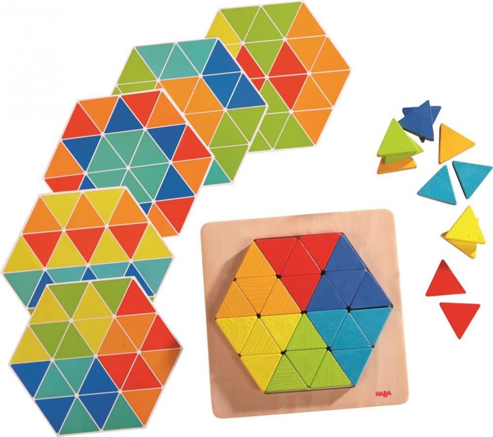 Haba Dřevěná skládačka a vkládačka Aranžování, barevné trojúhelníky od 2 let