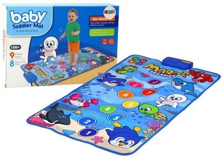 Mata Taneczna Edukacyjna Interaktywna Ocean Dźwięki Mata muzyczna taneczna interaktywna edukacyjna z motywem oceanu to urządzenie, które nie tylko zachęca dzieci do tańca, ale także rozwija ich kreatywność i aktywność. Ozdobiona wspaniałymi kolorowymi obrazkami zwierząt morskich, jest nie tylko doskonałą zabawką, ale również uroczą ozdobą w pokoju dziecka. Specjalne czujniki reagują na ruch dziecka, co pozwala mu w pełni interaktywnie uczestniczyć w zabawie. Mata posiada wbudowane efekty dźwiękowe i melodie, dodając atmosfery podczas tańca i zabawy. Powierzchnia taneczna maty wyposażona jest w 9 interaktywnych przycisków, które po naciśnięciu uruchamiają różne efekty dźwiękowe i melodie, zachęcając dziecko do aktywności i eksploracji. Natomiast po naciśnięciu w jedno ze zwierzątek, dziecko usłyszy odgłosy jakie wydaje to podwodne zwierze. Ta zabawka nie tylko zapewnia rozrywkę, ale także stymuluje rozwój dziecka. Łączy zabawę z nauką i rozwojem, umożliwiając mu rozwijanie umiejętności sensorycznych, koordynacji ruchowej oraz rozwijanie poczucia rytmu i muzykalności. Mata zasilana jest na baterie 3x 1.5V AA, które nie są elementem zestawu. Wymiary maty: 100cm x 60cm Wymiary opakowania: 34,5cm x 24cm x 7cm Posiada certyfikat CE, ponadto jest zgodny z normą EN71. Przeznaczony dla dzieci od 18 miesiąca życia.