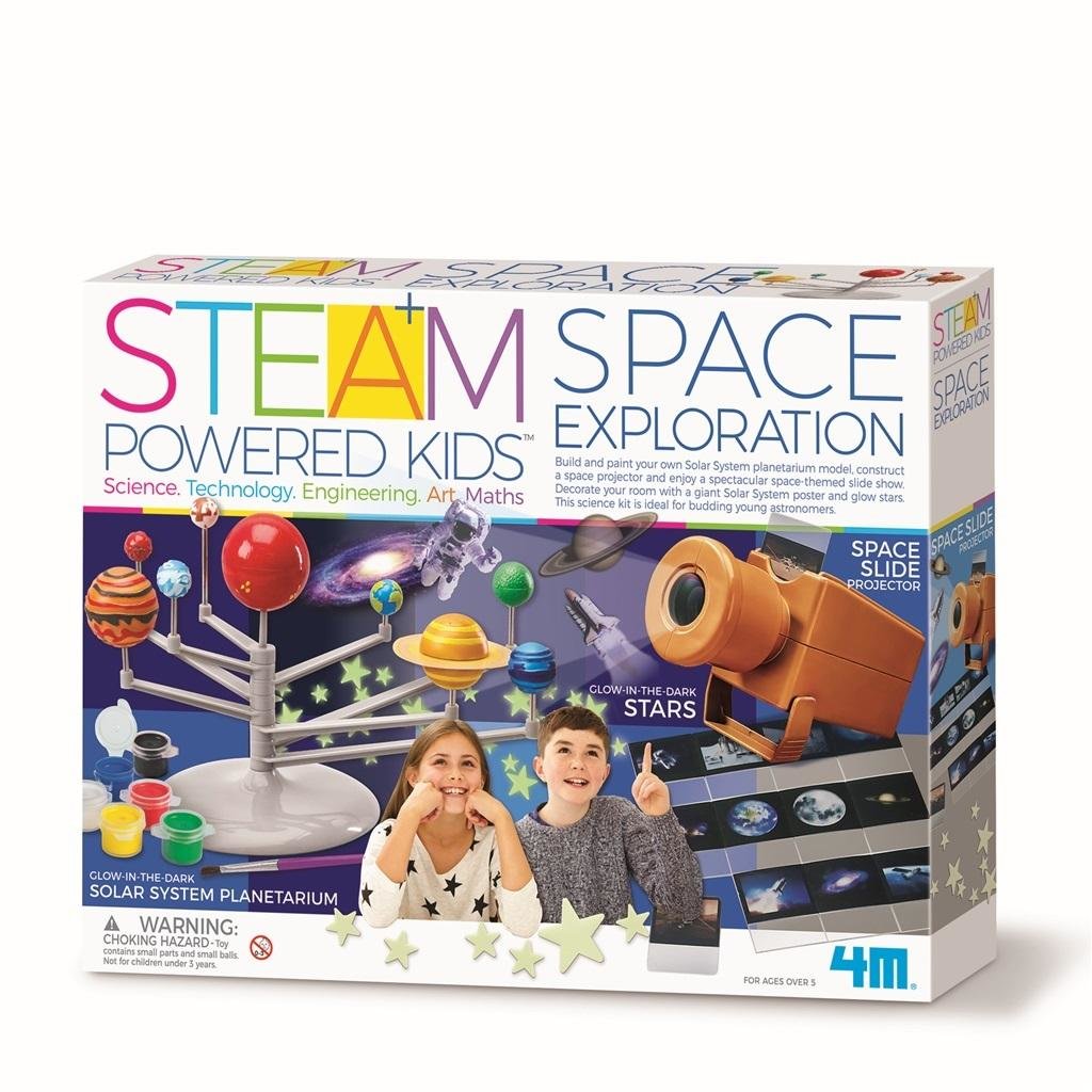 Ciesz się tym dużym zestawem Space Exploration STEAM.Zbuduj i pomaluj własny model planetarium Układu Słonecznego oraz zbuduj kosmiczny projektor i ciesz się spektakularnym pokazem slajdów z kosmosu.Udekoruj swój pokój gigantycznym plakatem Układu Słonecznego i świecącymi gwiazdami.To ciekawy zestaw projektów naukowych do eksploracji kosmosu. Ten zestaw naukowy jest idealny dla początkujących młodych astronomów.