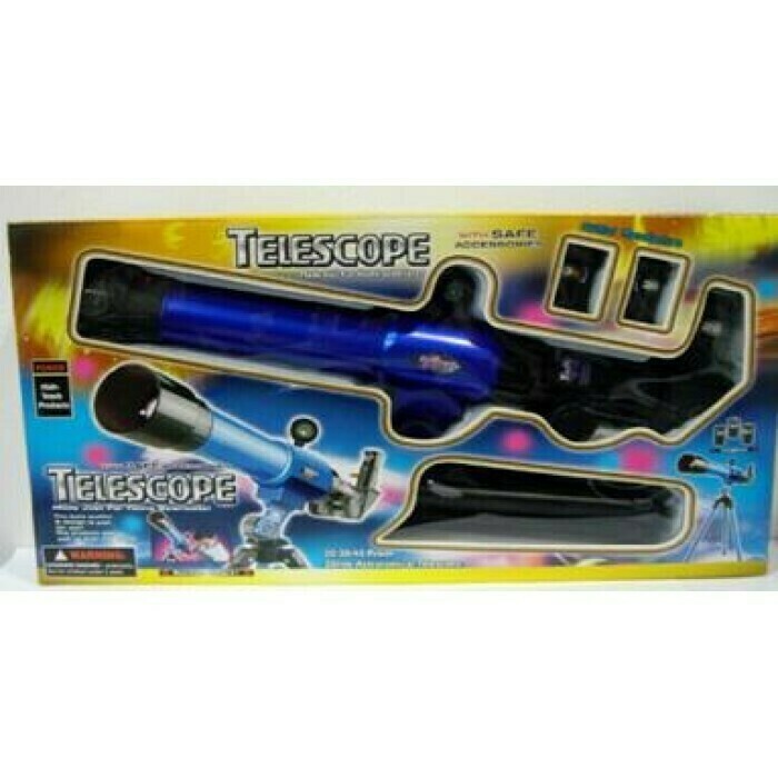 Niebieski teleskop z małym statywem i trzema zdejmowanymi okularami (powiększenie - 20, 30 i 40 razy). Jest łatwy w konstrukcji. Pozwala na oglądanie obiektów niebieskich w powiększeniu. Odznacza się profesjonalnym wyglądem. Statyw jest regulowany. Dzięki temu możemy dostosować go do naszej postawy.Specyfika:- średnica obiektywu: 55 mm,- ogniskowa: 170 mm,- możliwość obrotu o 360 stopni,- możliwość powiększenia o: 20, 30 lub 40 razy.Wymiary opakowania: 43,5x8x22cmWiek: 8+